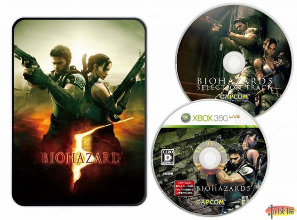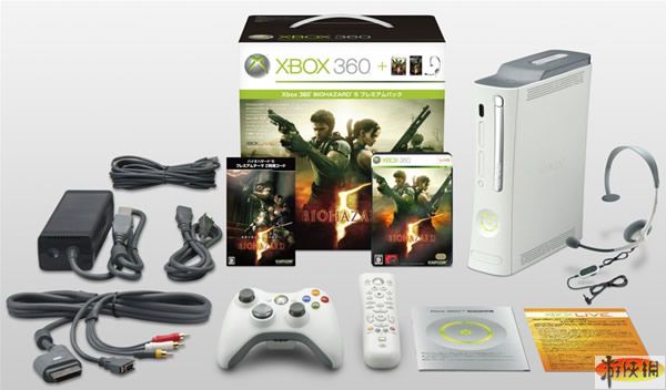 第二款是2009年3月5日發(fā)售的名作《生化危機(jī)5(Biohazard 5)》,該游戲的同捆版包裝中有60G XBOX360主機(jī)一臺(tái),金會(huì)員卡一張,《生化危機(jī)5(Biohazard 5)》游戲碟和原聲CD各一張。價(jià)格為34800日元